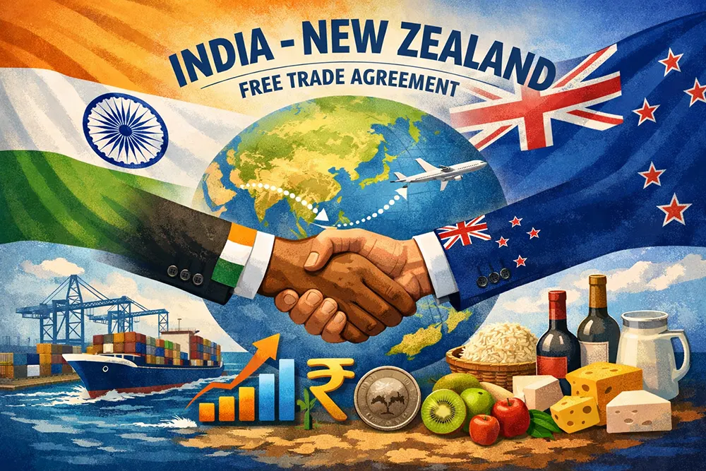 India and New Zealand concluded a landmark Free Trade Agreement (FTA in December 2025, marking a significant step in deepening bilateral economic ties between the two countries. Designed as a fast-tracked and forward-looking pact, the agreement focuses on liberalising trade in goods and services, strengthening investment flows, and enhancing mobility for students and professionals, while […]